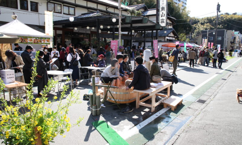 この10年様々な企画に取り組み、地域のよりどころで伊豆長岡温泉のシンボルでもある南山荘を会場に、温泉場出逢い通りを通行止めの歩行者天国とした開催にしたり、バスターミナル「温泉駅」や空き店舗を活用したりと、多くの方のご協力をいただきながら取り組んできました。